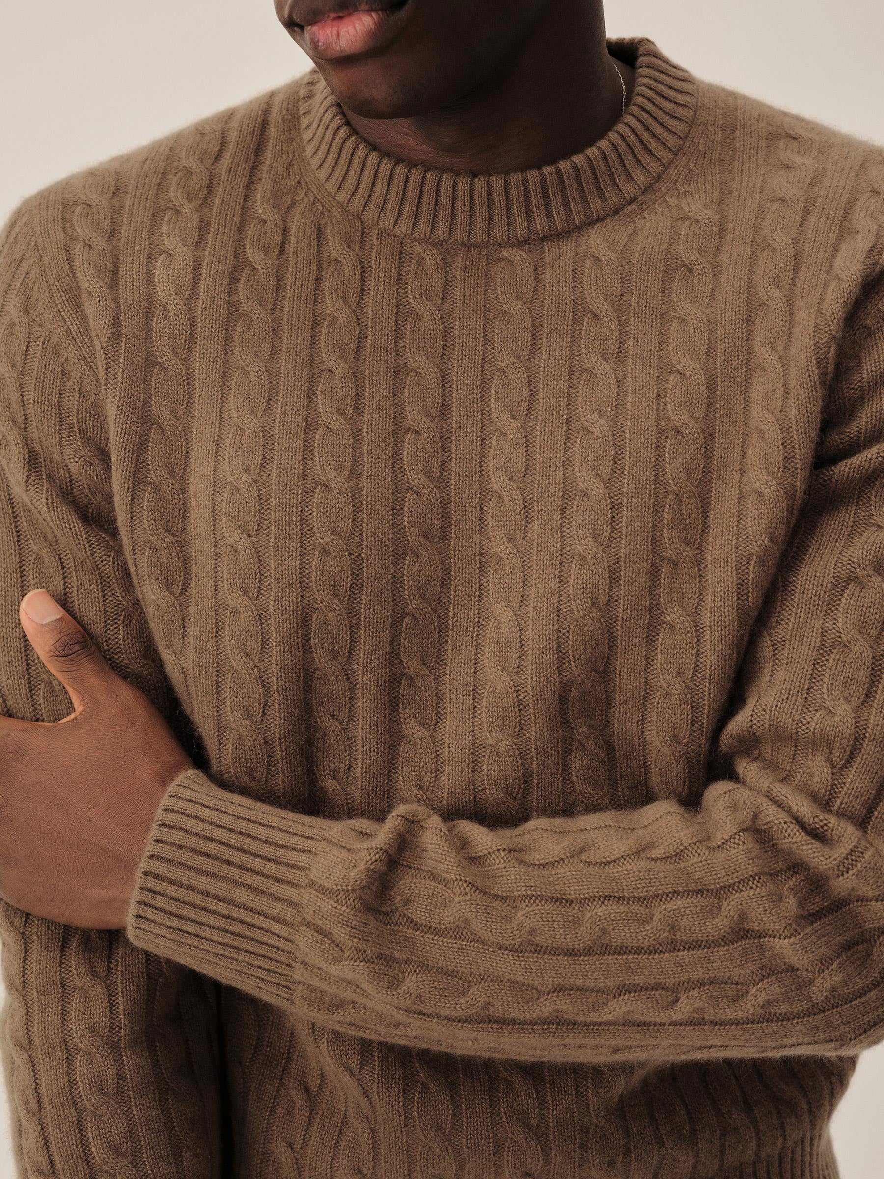 The California Cashmere Cable Crew is spun from 100% long-staple cashmere and knit in a refined 12-gauge cable pattern. Inspired by the casual poise of 1960s Ivy League sweaters, it’s finished with yarn-dyed ribbing at the neck, cuffs, and hem, and garment-rinsed for a soft, lived-in feel.