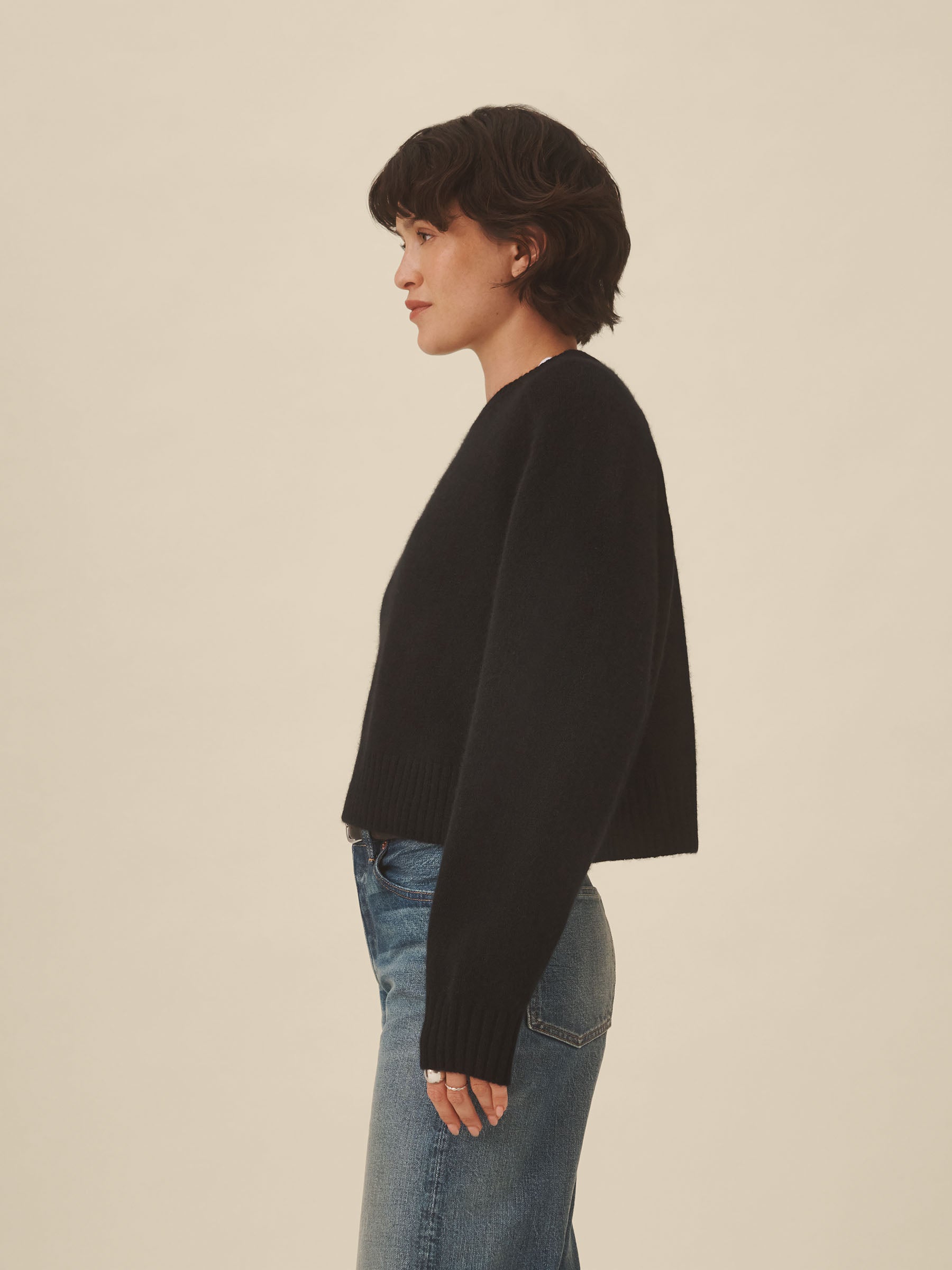 A cozy crewneck crafted from 100% cashmere in a soft jersey stitch. Designed with a boxy, oversized silhouette and saddle-shaped armholes, and finished with ribbed trims at the neckline, cuffs, and hem.