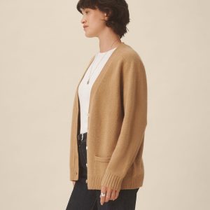 Inspired by vintage “grandfather” cardigans, a sweater made from 100% cashmere in a soft jersey stitch with natural drape and structure. Designed with an oversized fit and saddle armholes, it’s finished with rib trims at the cuffs and hem, functional buttons at the center front, and cleanly finished pockets.