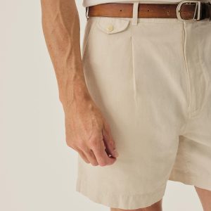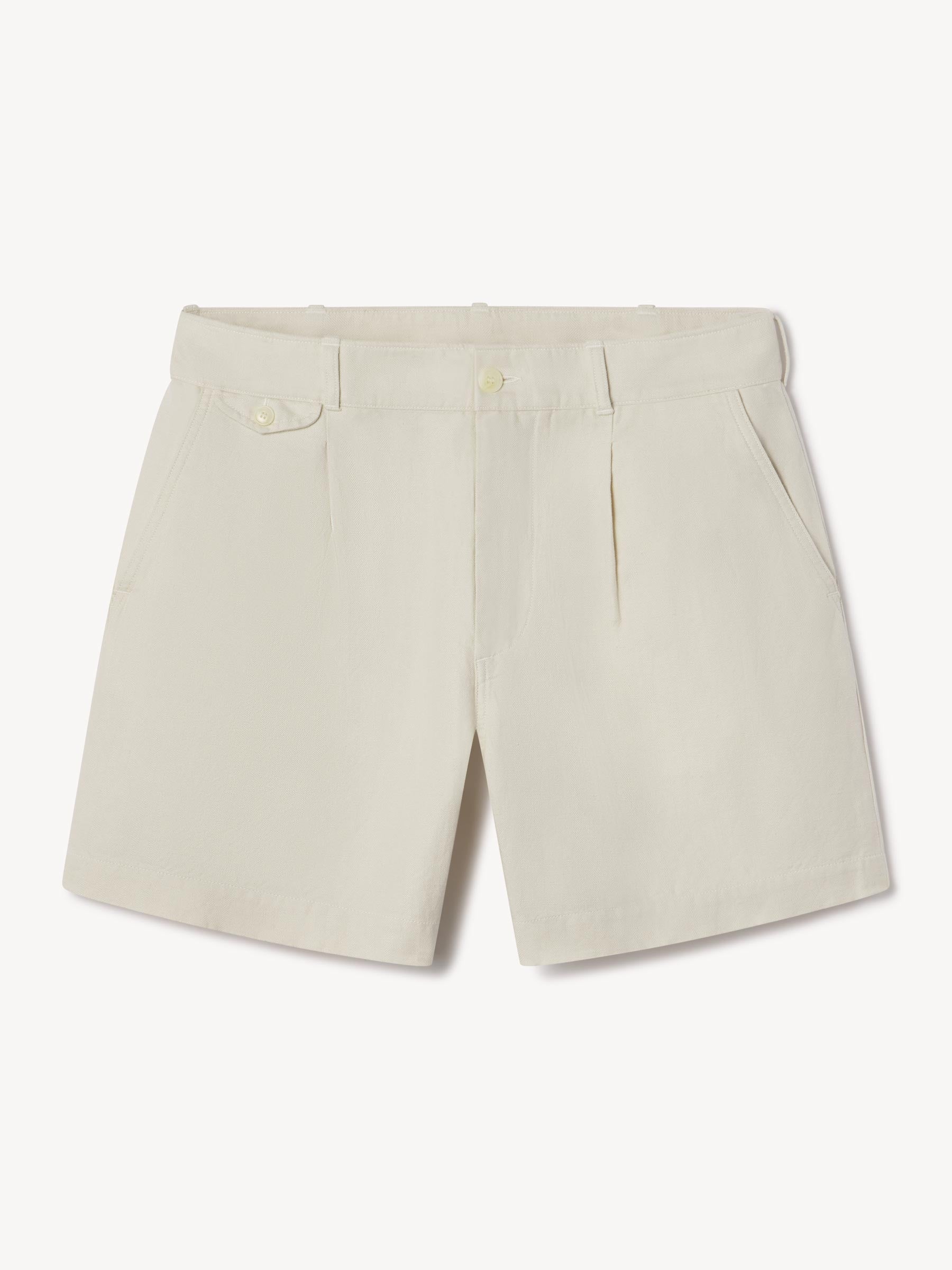 A single pleat short named after the Parisian tailor who helped popularize pleated trousers in the early 20th century. Cut in a relaxed, classic fit with a high rise and 6-inch inseam, the design features a single reverse pleat that adds volume through the thigh for comfort. Made from a 200 GSM cotton-linen herringbone that’s been washed for a soft, broken-in feel from day one. Details include front slash pockets, two welt back pockets, and a buttoned coin pocket.