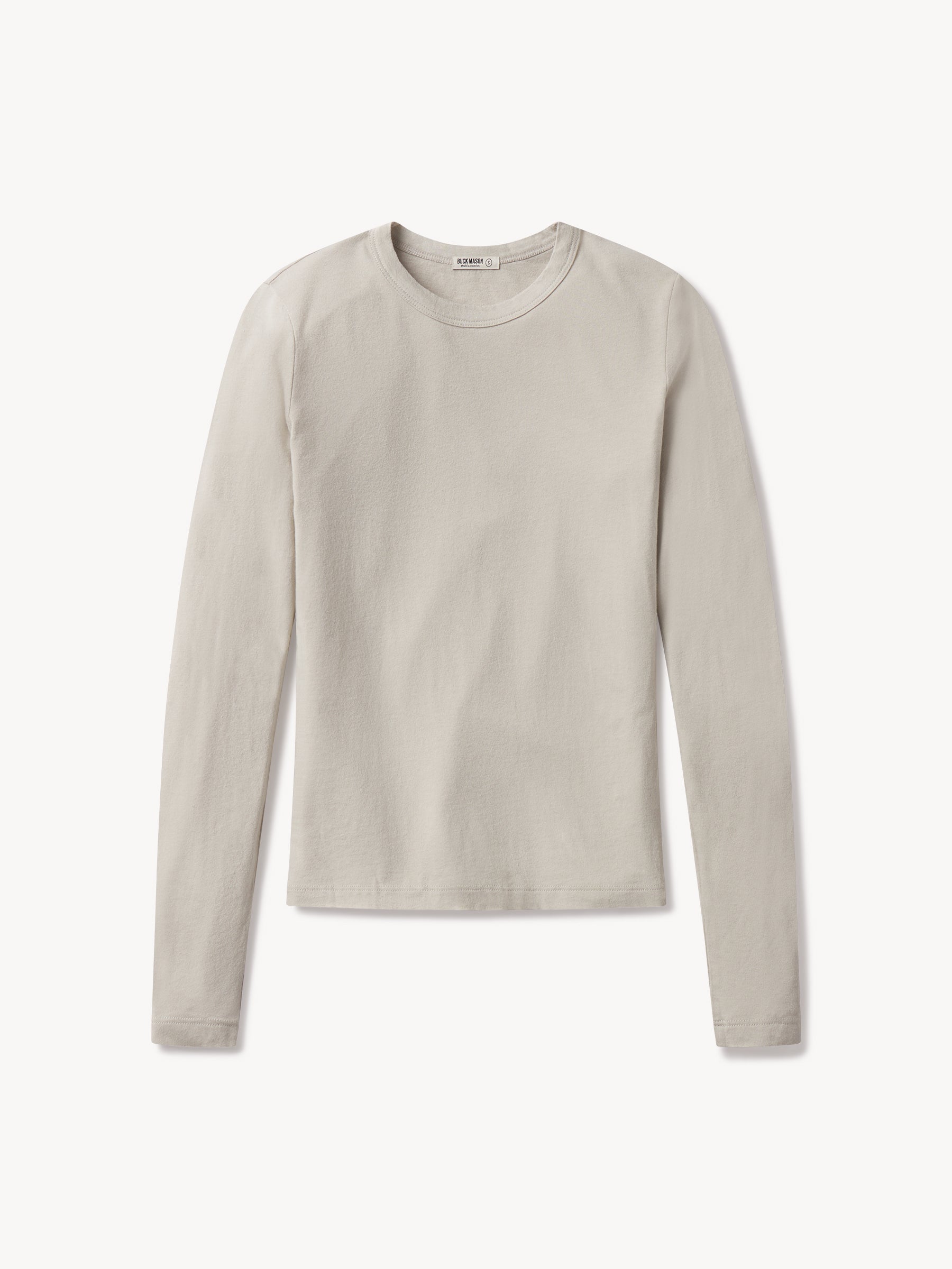 Slim fit long sleeve crewneck tee cut from a supersoft 130 GSM blend of bamboo, cotton, and wool. Features a straight hem, a self bound neck, and raised armholes that hug the contours of the shoulders. Garment washed for a lived-in feel.