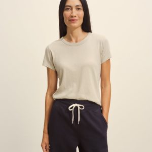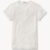Slim fit crewneck tee cut from a supersoft 130 GSM blend of bamboo, cotton, and wool. Features a straight hem, a self bound neck, and raised armholes that hug the contours of the shoulders. Garment washed for a lived-in feel.