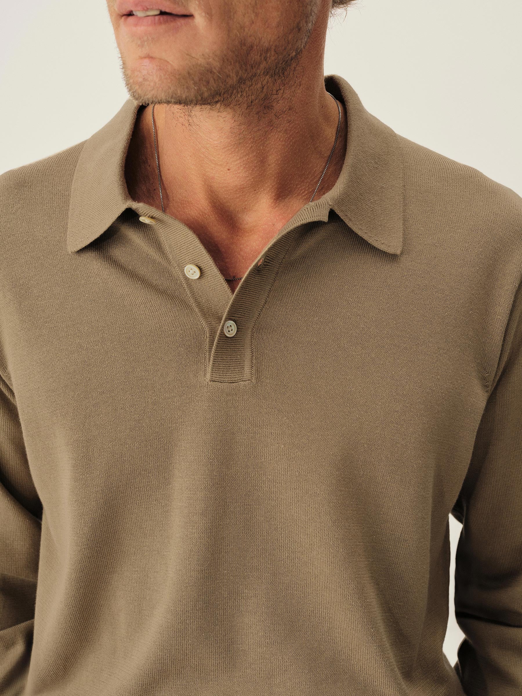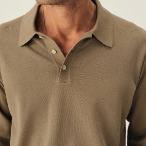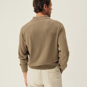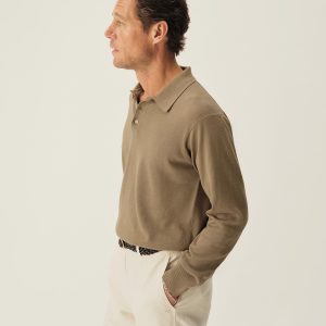 A fully fashioned, long sleeve polo that draws inspiration from the lifestyle surrounding Lake Como in the 1960s. Knit from an ultrafine blend of yarn-dyed organic Egyptian cotton and cashmere, spun in Italy. The polo features a classic fit with jersey body and sleeves, a rib-knit collar, cuffs, and hem.