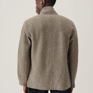 Classic fit chore coat with a slimmer cut through the arms and room in the torso for layering. This 340 GSM felted merino wool has been twice boiled for improved insulation and durability. Details include three patch pockets, real horn buttons, and a notch collar. Constructed with hand-sewn facings and cover-stitching throughout.