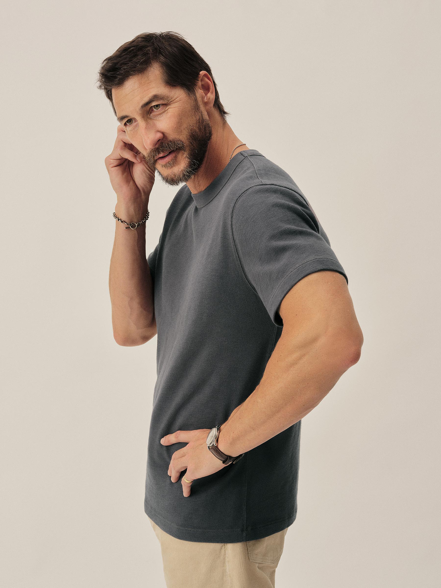 Our full-cut Field Spec Tee, built with hard-wearing, rugby-weight cotton and washed for a soft, lived-in texture.