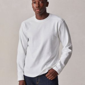 A relaxed, long-sleeved, heavyweight cotton tee modeled after a vintage rugby shirt. The soft cotton jersey is about twice as heavy as our Pima tee, with tiny vertical ribs that gently glide across the skin. This is a solid, substantial stand-alone tee for cold weather.