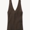 Slim-fit, vintage-inspired V-neck tank crafted from 100% Italian cotton yarn with a 3×3 deep rib structure. Designed with concealed chain threads and snaps beneath each shoulder to keep bra straps in place. Garment washed for a truly vintage, broken-in feel.