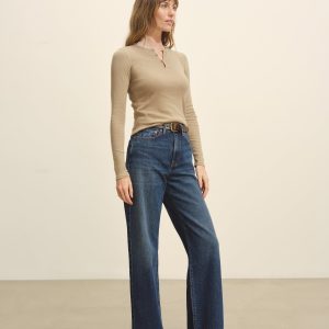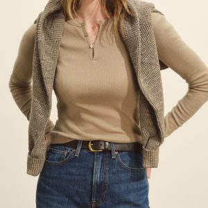 “Slim fit long sleeve henley cut from extra fine 170 GSM cotton with recycled content that holds its shape. Details include a a three-button loop placket with corozo fish eye buttons, and straight, clean finished hem and cuffs. Garment washed for a lived-in feel.