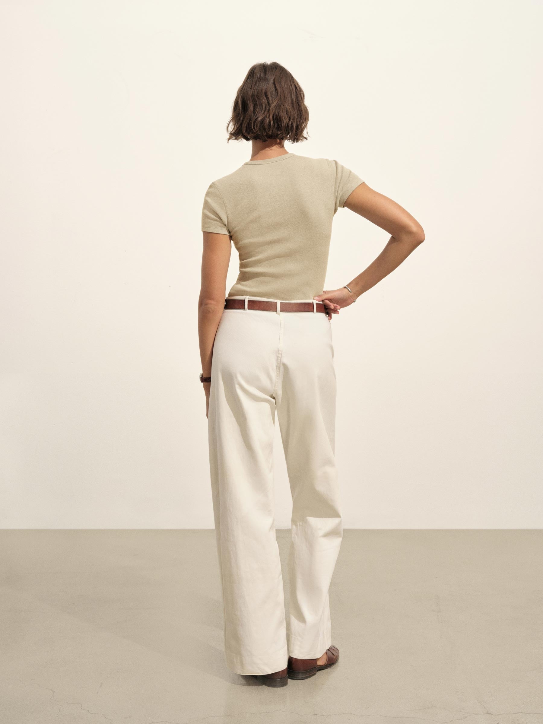 Our take on the classic baby tee, crafted from a superfine blend of new and recycled cotton with a subtle, textured rib. Garment washed for a lived-in look and feel.