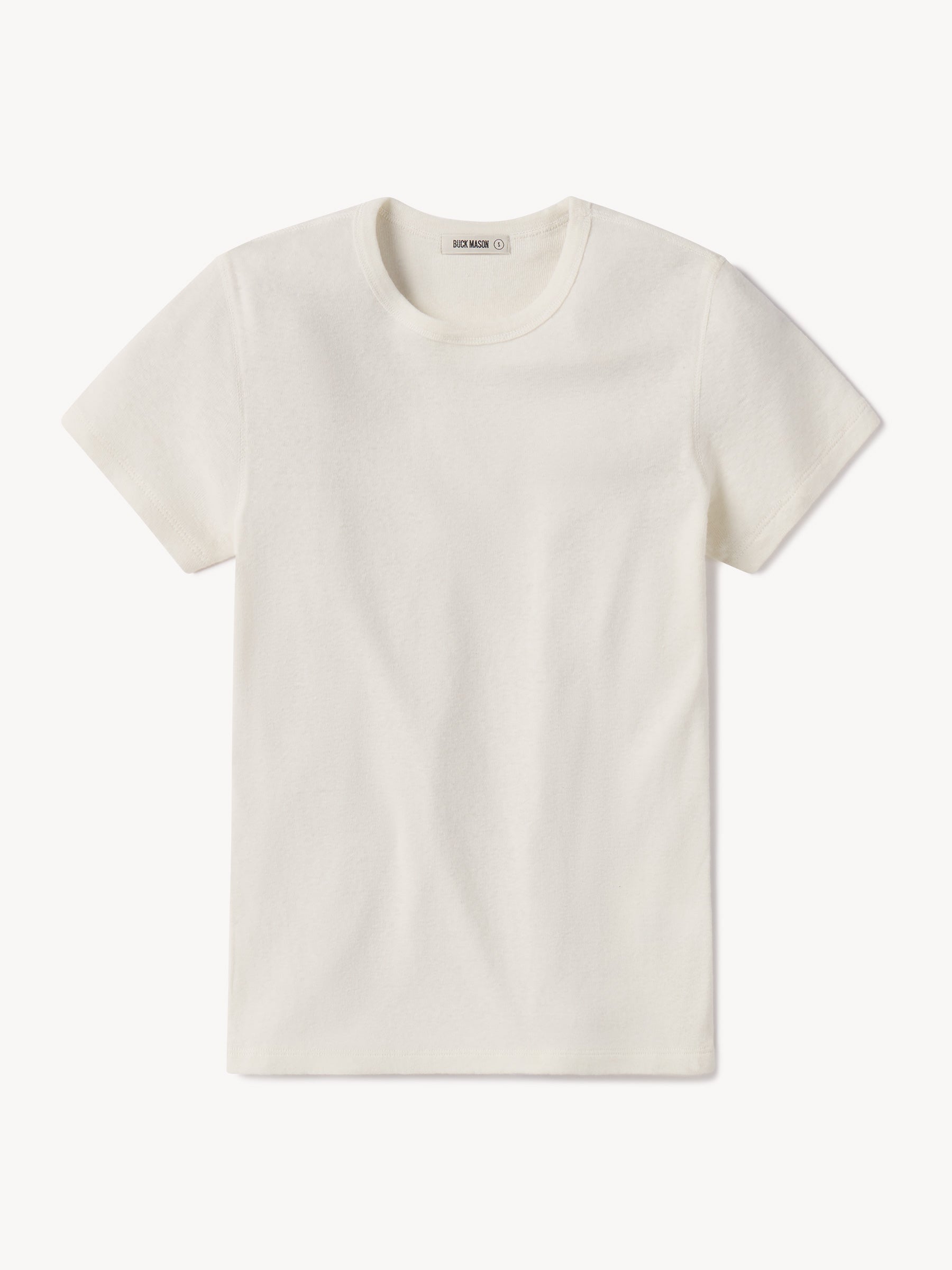 Our take on the classic baby tee, crafted from a superfine blend of new and recycled cotton with a subtle, textured rib. Garment washed for a lived-in look and feel.
