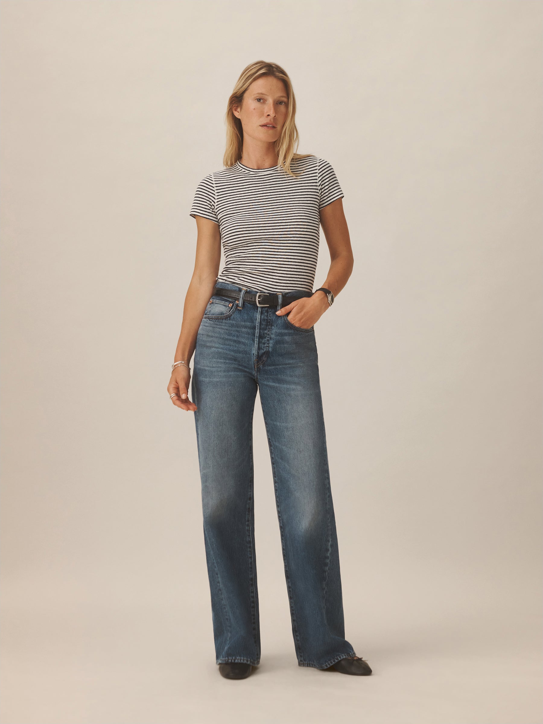 Our take on the classic baby tee, crafted from a superfine blend of new and recycled cotton with a subtle, textured rib. Garment washed for a lived-in look and feel.