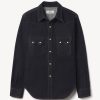 A classic western-style workshirt in a washed cotton chambray. The shirt has all cowboy details like pearl snap closures, curved western yoke, scalloped flap pockets, and three snaps along the cuffs. The blue chambray cotton has been washed for a lived-in feel.