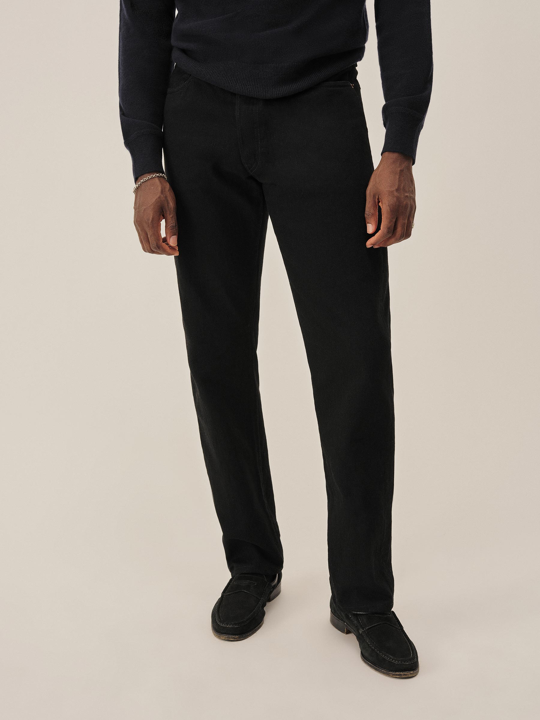 A classic 5-pocket jean in our Ford Standard fit: mid-rise, straight through the thighs with a taper below the knee. Inspired by our favorite vintage jeans, this 14 oz denim from Japan-based Kaihara mills has a hint of stretch and an organic texture that develops more character with every wear. Garment rinsed for a lived-in feel. Details include copper rivets and a metal tack button fly.