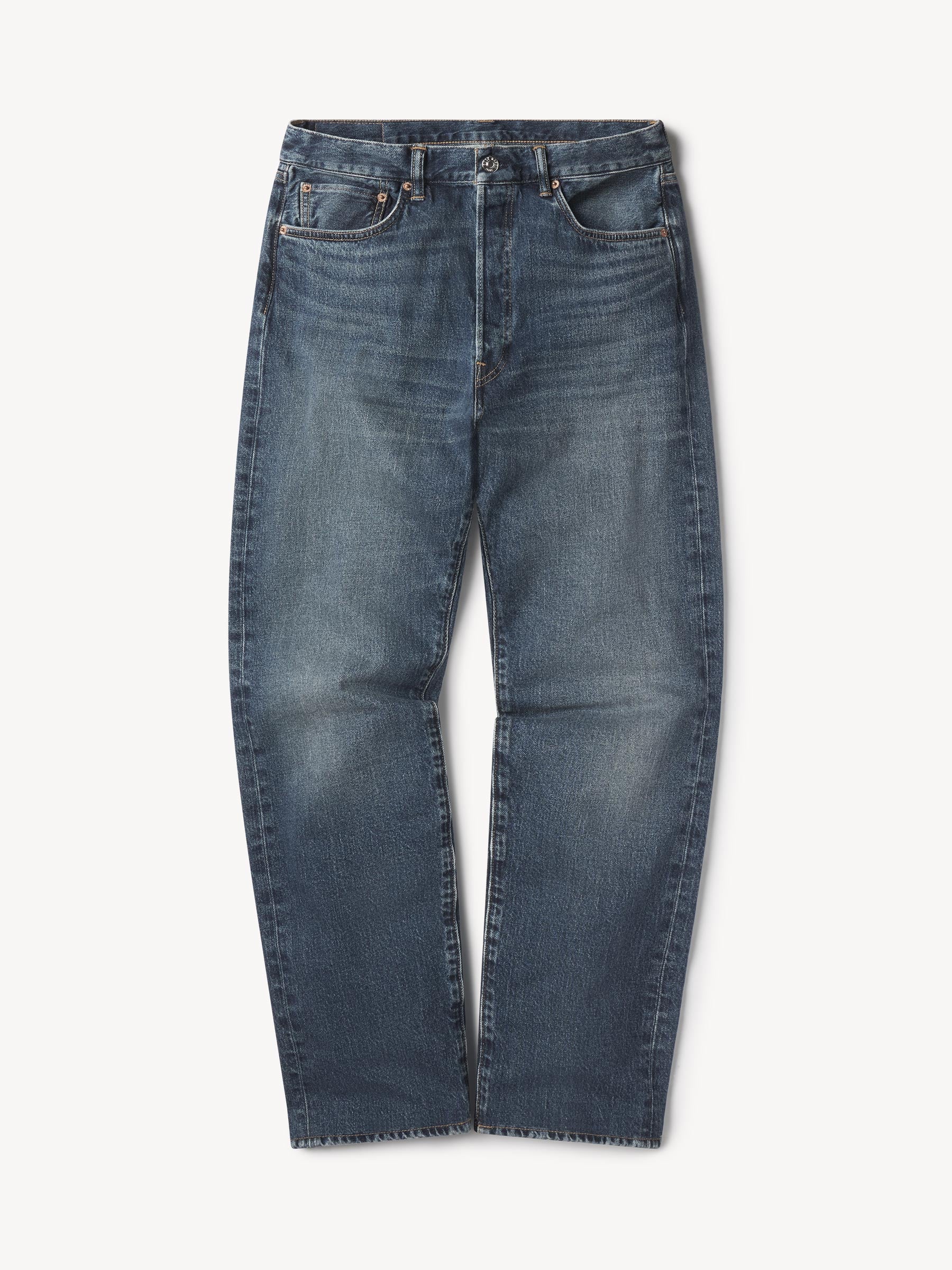 A classic 5-pocket jean in our Ford Standard fit: mid-rise, straight through the thighs with a taper below the knee. Inspired by our favorite vintage jeans, this 14 oz denim from Japan-based Kaihara mills has a hint of stretch and an organic texture that develops more character with every wear. Garment rinsed for a lived-in feel. Details include copper rivets and a metal tack button fly.