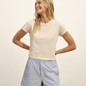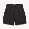 Pull-on shorts inspired by men’s military boxers, made from 2.8 oz. cotton plainweave. Relaxed, high rise fit with a 4” inseam. Featuring faux button and zip fly, an elastic waistband, on-seam side pockets, and back patch pockets. Finished with a mother of pearl buttons and garment washed for a broken-in feel.