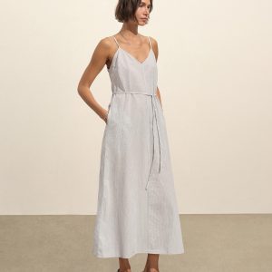Relaxed slip dress in a 3.7 oz. plainweave cotton with a subtle luster and an easy drape that hits above the calf in a 45.75” length. Features adjustable straps and on-seam pockets. Size down for a more fitted silhouette. Garment washed for a lived-in feel.