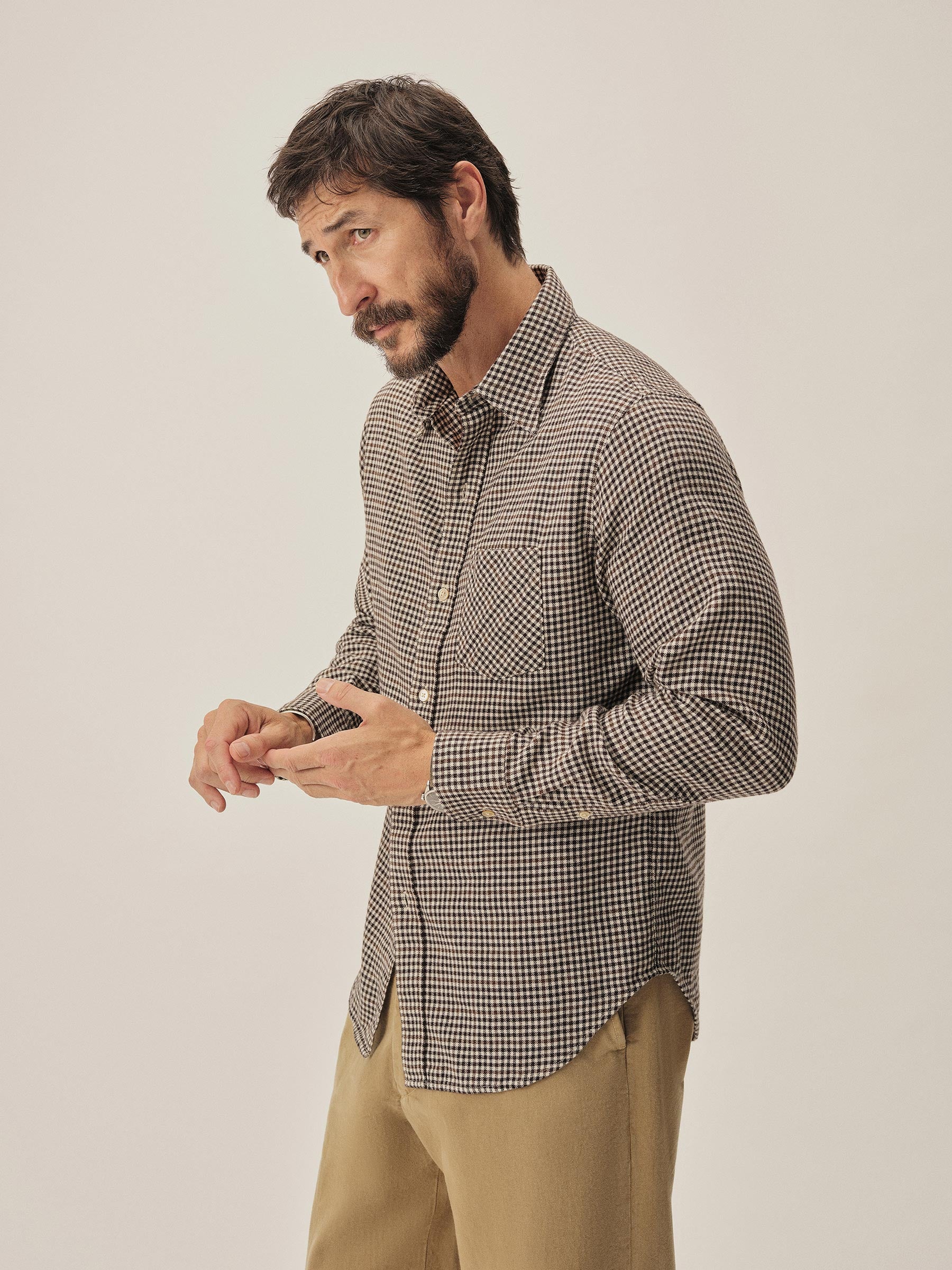 A modern flannel shirt cut from 4 oz. yarn-dyed cotton twill that’s been brushed on both sides for unparalleled softness. Features a single rounded pocket and shell buttons. Garment washed for a lived-in feel. The lightest flannel we make and the softest shirt in your closet.