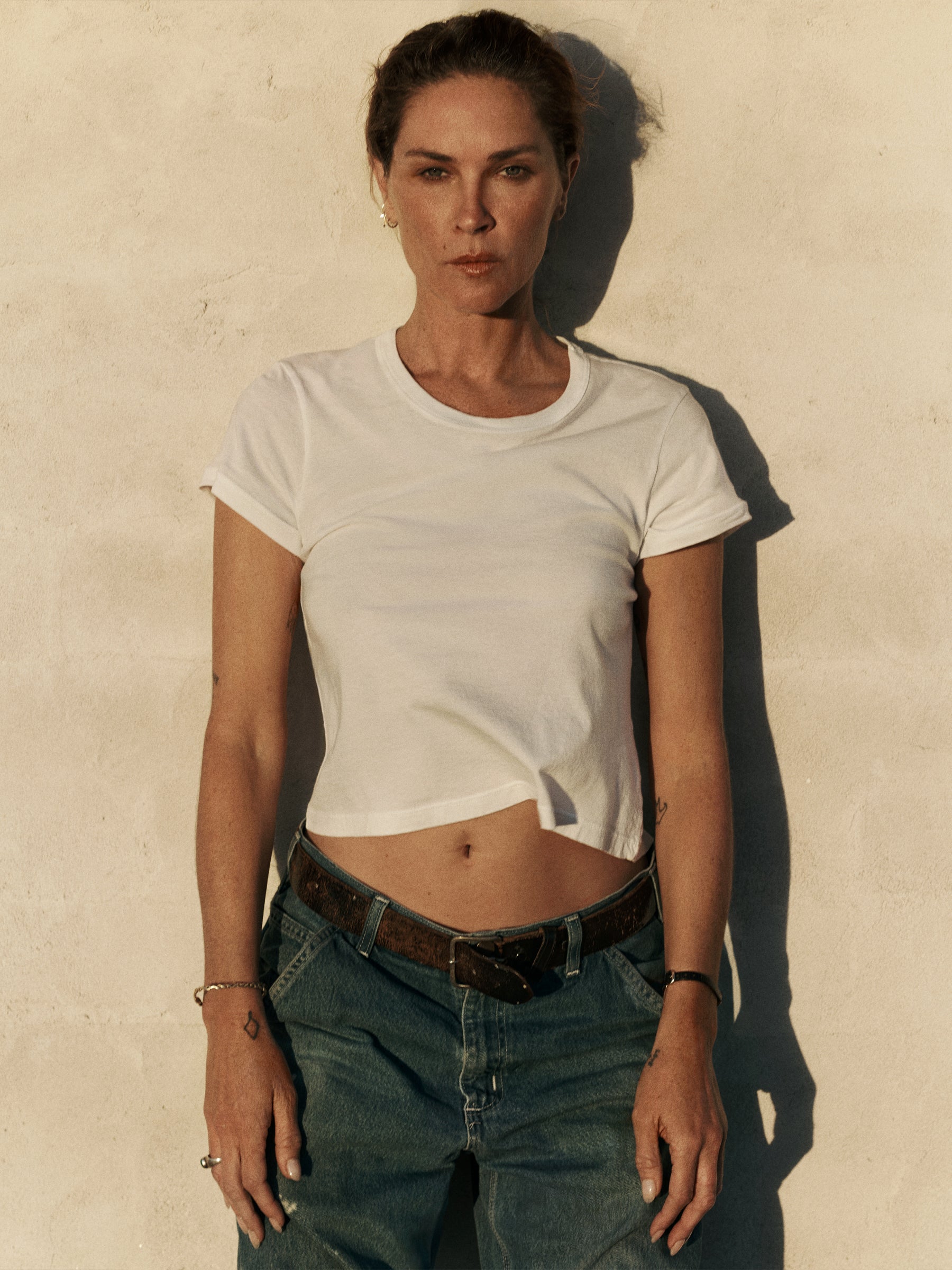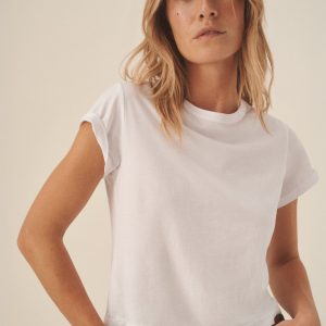 Boxy short sleeve crewneck tee with a straight hem. Cut from 120 GSM Supima cotton. Constructed with rib neck binding and double-needle cover-stitching at the hem. Garment washed for a lived-in feel.
