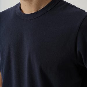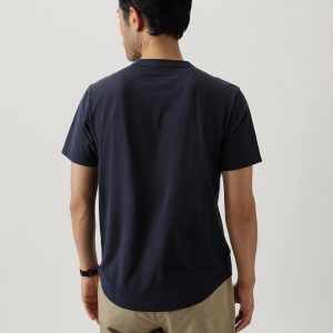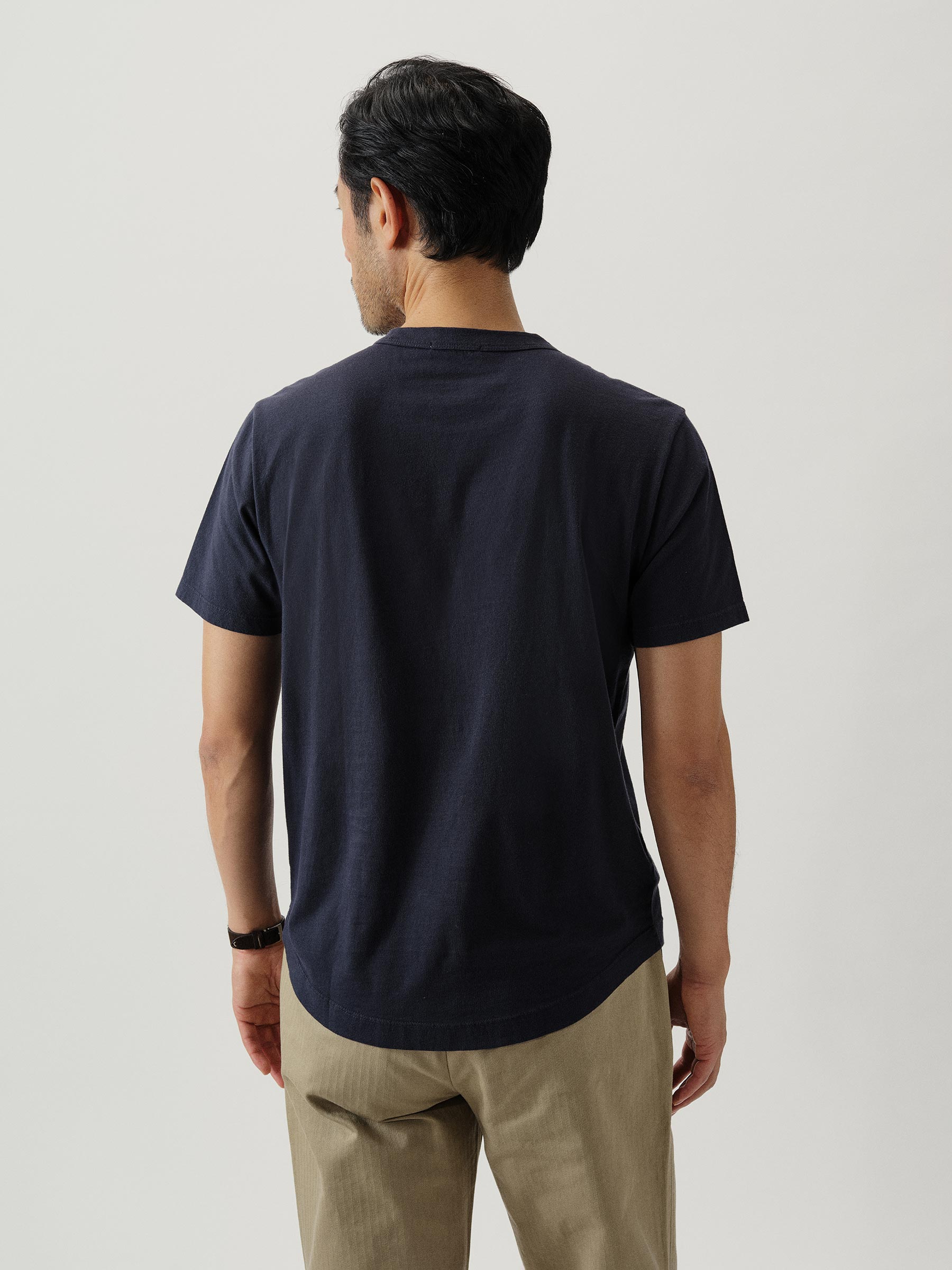 Classic fit short sleeve crewneck tee with our signature curved hem, cut from USA-grown and milled 140 GSM jersey knit from long-staple Supima cotton with a soft, smooth hand and sewn at BM Knitting Mills in Mohnton, PA. Constructed with self-neck binding and a flat stitch finish for comfort. Garment washed with enzymes and softener for a lived-in feel.