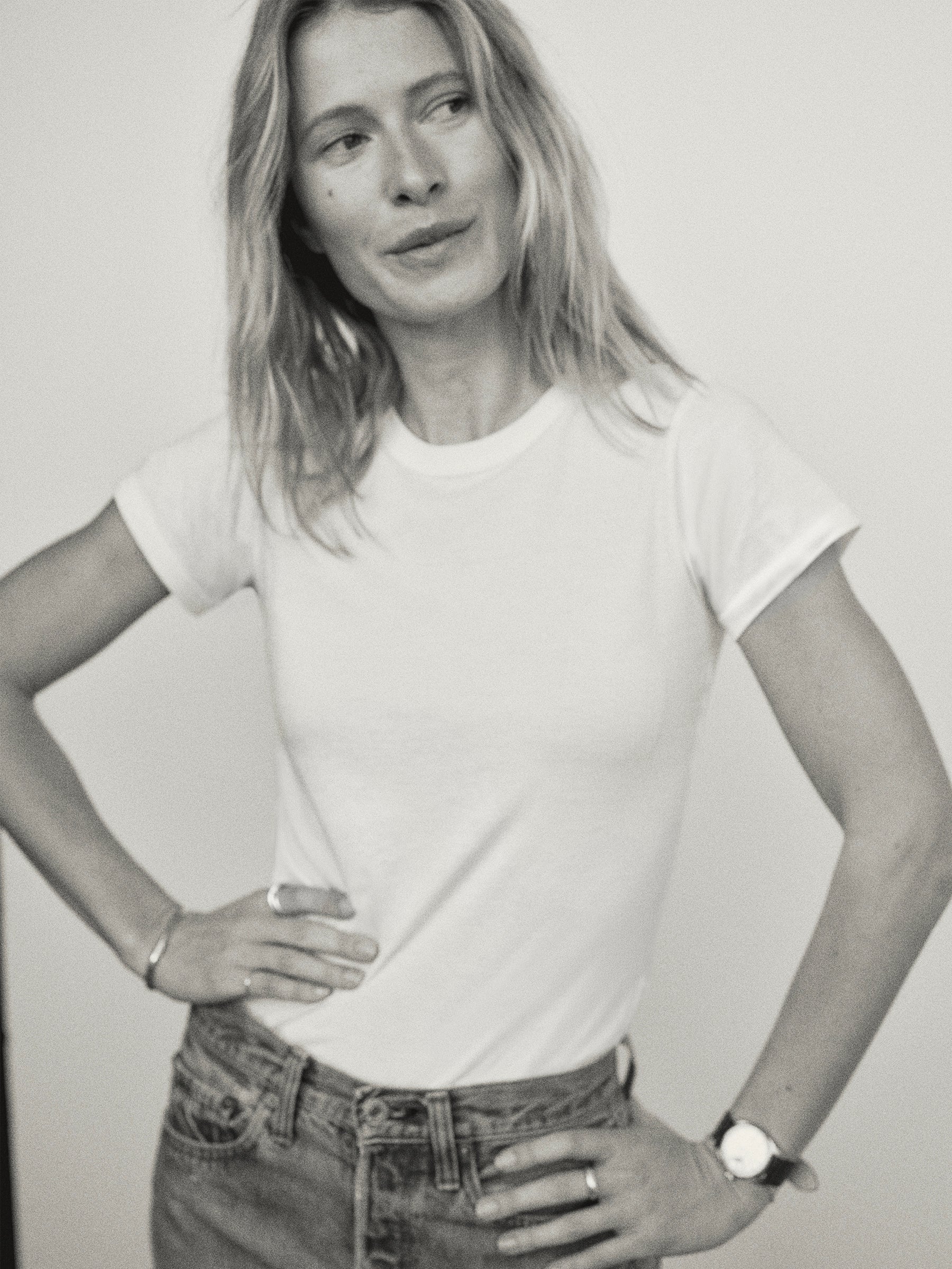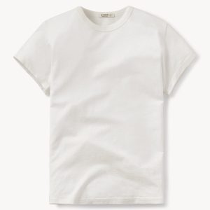 Slim fit short sleeve crewneck tee with a straight hem in 120 GSM jersey, knit from long-staple Supima cotton. Constructed with a durable rib stitch collar and double-needle cover stitch hem. Garment washed with softener for a lived-in feel.