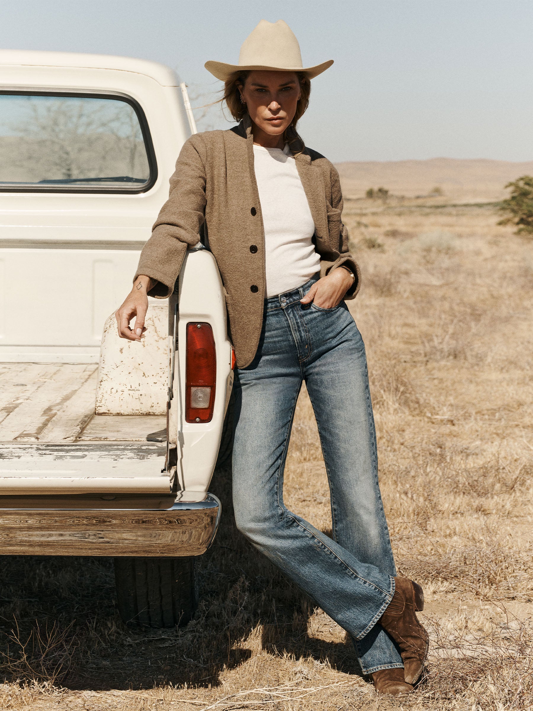 A high-rise boot jean built from Japanese indigo denim with subtle stretch, designed with classic five-pocket construction and a zip fly. Cut with a fitted top block, slight boot cut, and a 33″ inseam.