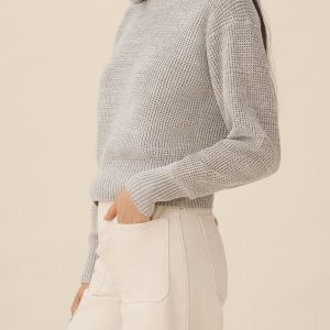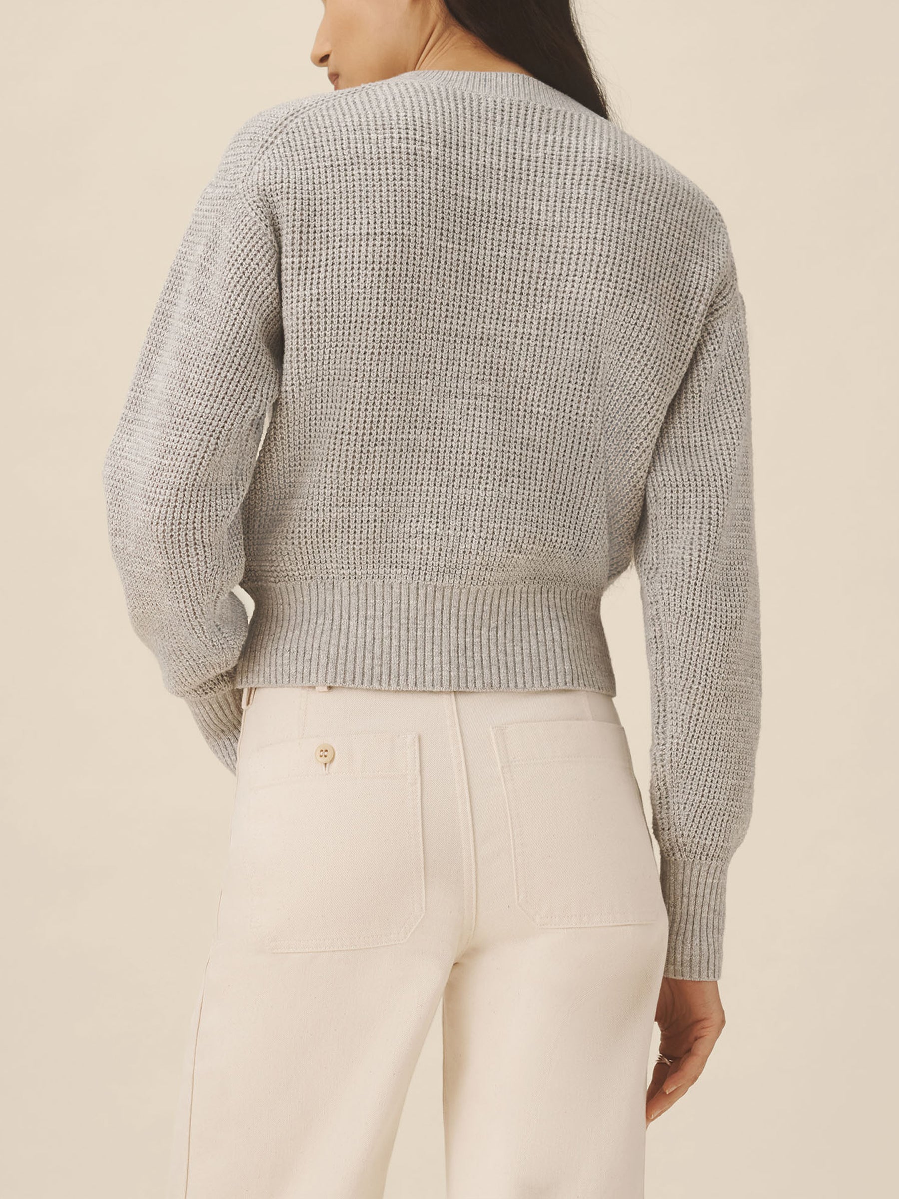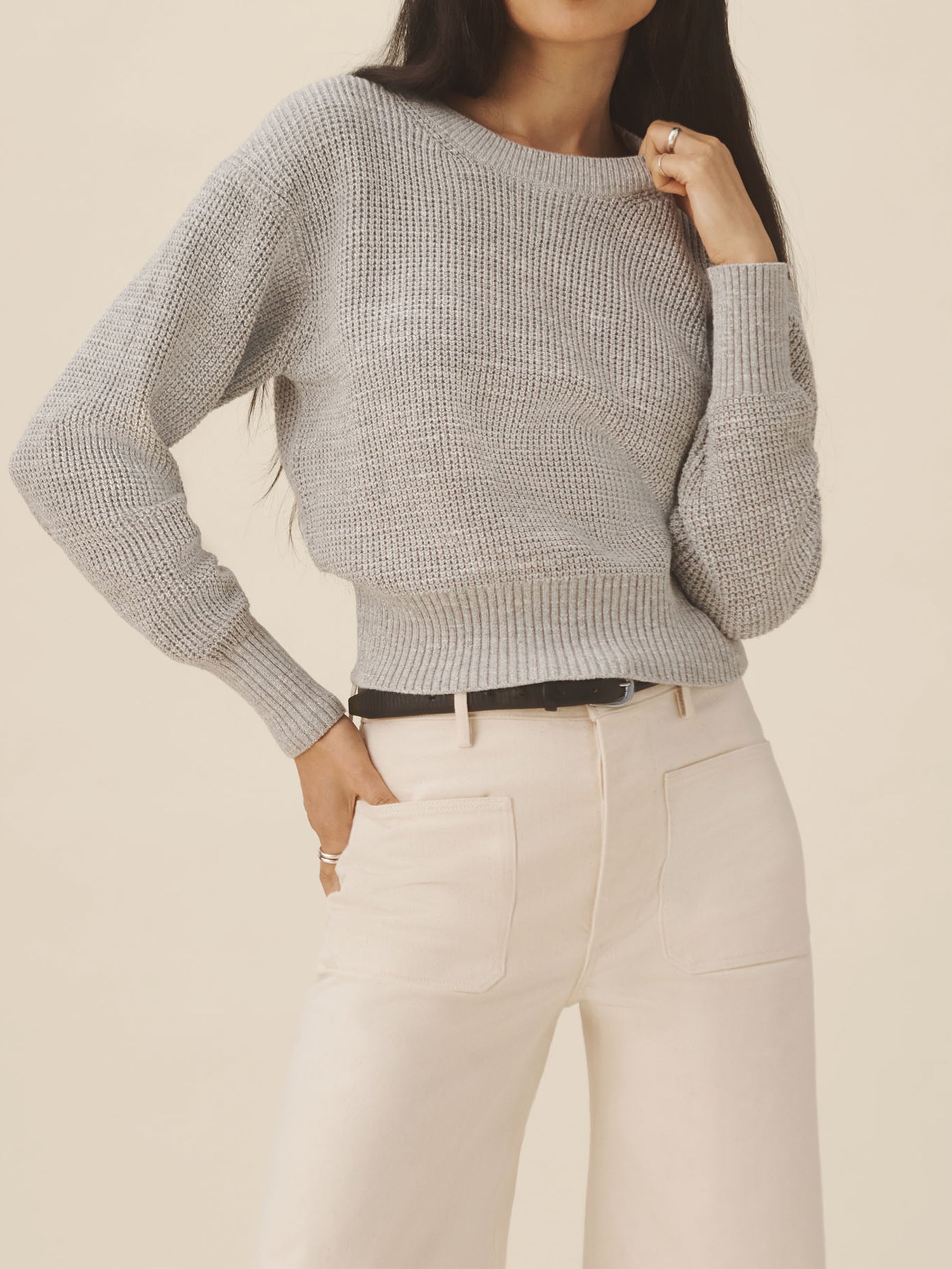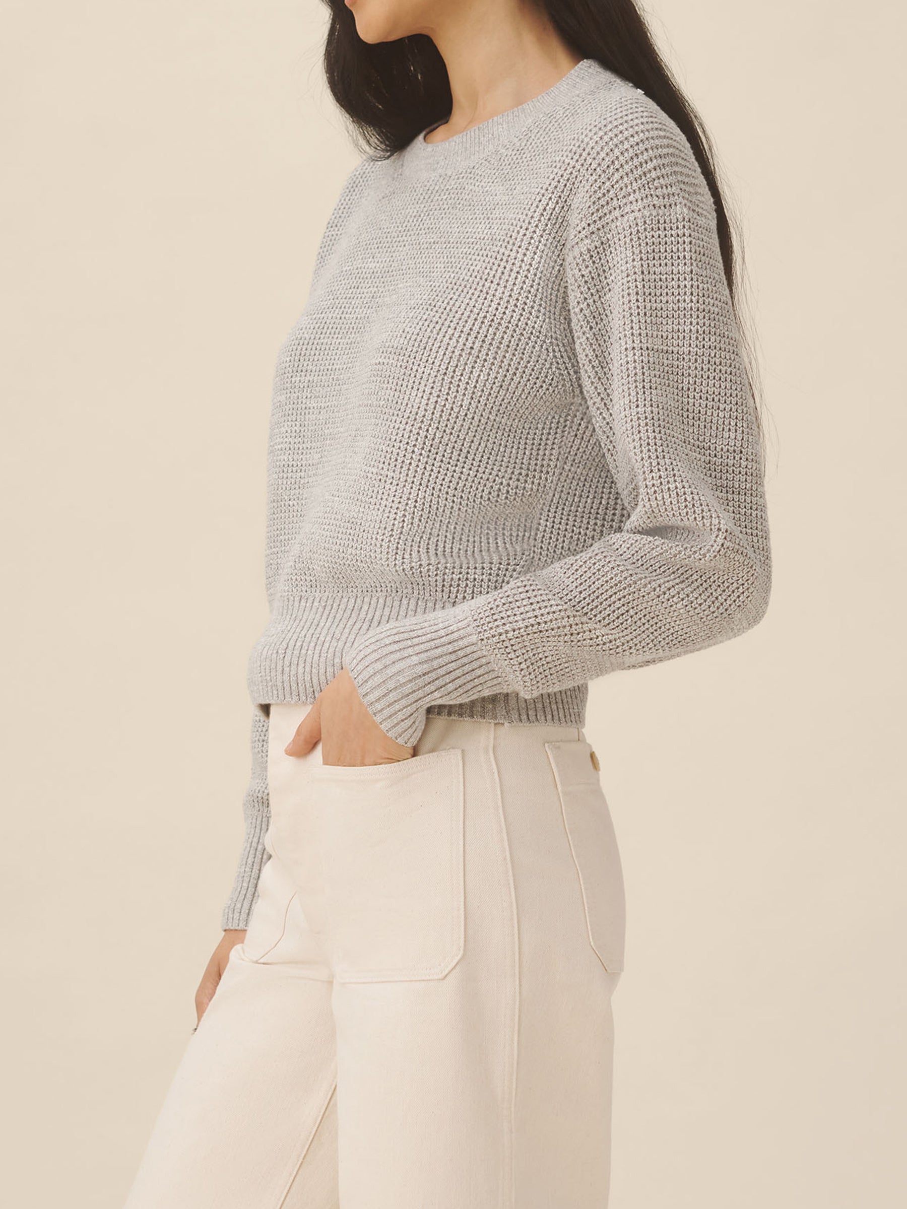 1960s inspired crewneck sweater with an easy, slim fit. Crafted from 7-gauge waffle knit yarn-dyed cotton with a light slub texture, featuring fashioning at the neck and drop-back shoulders as a nod to mid-century.