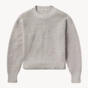 1960s inspired crewneck sweater with an easy, slim fit. Crafted from 7-gauge waffle knit yarn-dyed cotton with a light slub texture, featuring fashioning at the neck and drop-back shoulders as a nod to mid-century.
