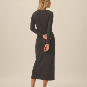 An ankle-length Henley dress made from a military-inspired rib knit with subtle stretch. Designed with a slim fit through the body, it’s designed with a scoop neckline, full-length sleeves, and a center front placket with real mother-of-pearl shell buttons. Finished with clean lines and an open neckline.