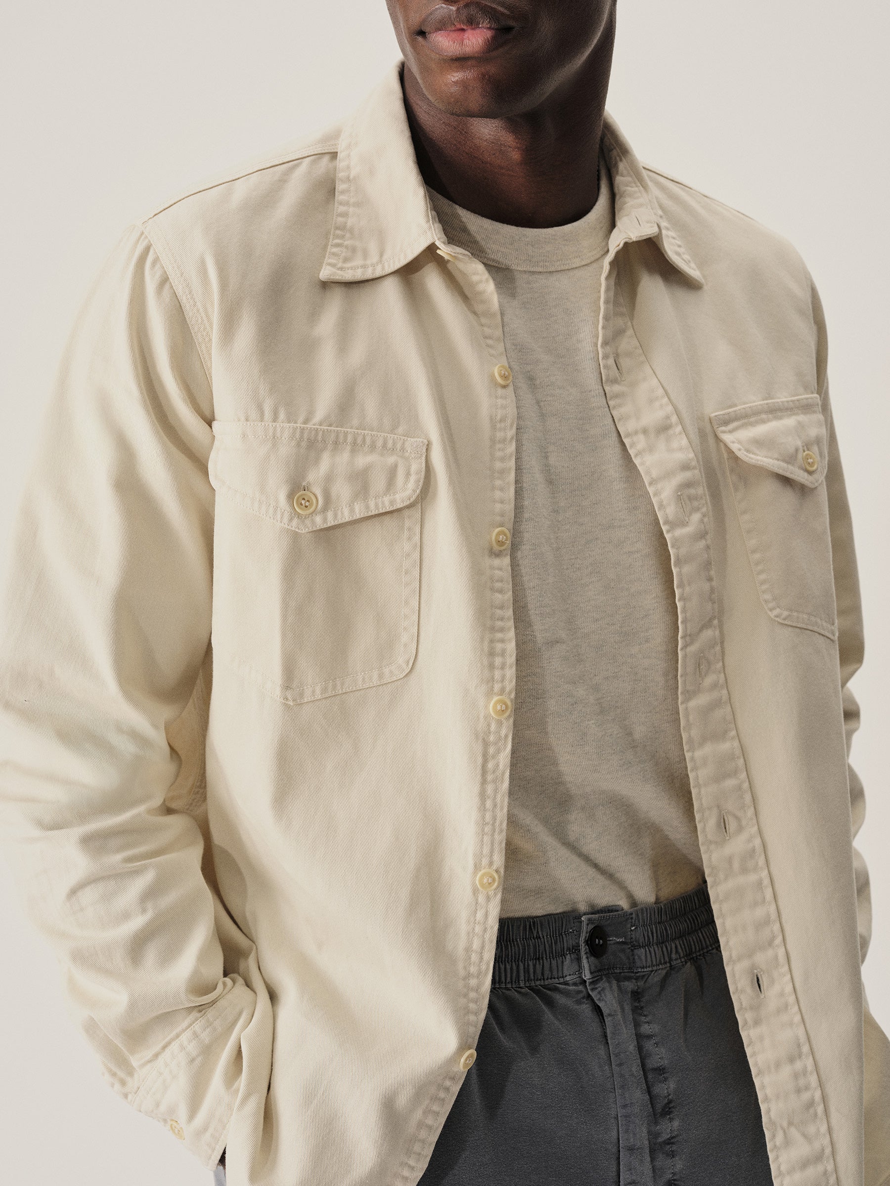 Inspired by a 1940s workshirt from our archives, this is the quintessential midcentury American workshirt. It has a classic fit, two flap chest pockets, and a curved hem. It is cut from a sturdy midweight cotton twill that will soften with every wear. Washed for a lived-in feel.