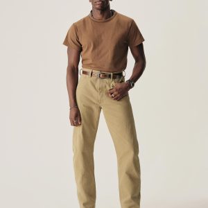 Cut from a midweight 200 GSM USA-grown cotton, developed, milled, and sewn at BM Knitting Mills in Mohnton, PA. This classic fit crewneck tee has a straight hemline, bound neck and screen-printed label for comfort. Constructed with a split-needle cover stitch at shoulders and armholes. Double-washed for a soft, smooth texture and consistent fit.