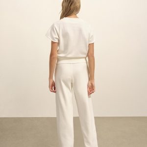 A modern nod to classic athletic wear, this wide leg sweatpant is cut from 100% cotton towel terry with a substantial 360 GSM weight. Piece dyed and polished, the fabric delivers a soft, broken-in feel with rich, dimensional color. The fit is relaxed through the hip and leg, with a 29 ½” inseam for an easy drape. An internal tunneled elastic waistband offers all-day comfort, finished with a woven contrast lining for a quiet hit of structure. Designed to move easy and wear even easier.