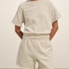 Relaxed crewneck sweatshirt with cut-off sleeves in 290 GSM yarn-dyed cotton French terry with a semi-brushed back. Features a “Dorito” insert at the neckline for shape retention, drop shoulders, and 1×1 ribbing at the collar and waistband. Garment washed for a lived-in feel. Pair it with the Interloop Cut Off Sweatshort to complete the look.