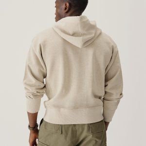 A midcentury-inspired hooded sweatshirt made from plush, not-too-heavy, not-too-light, welterweight French terry. Features a double-layer hood and kangaroo front pocket.